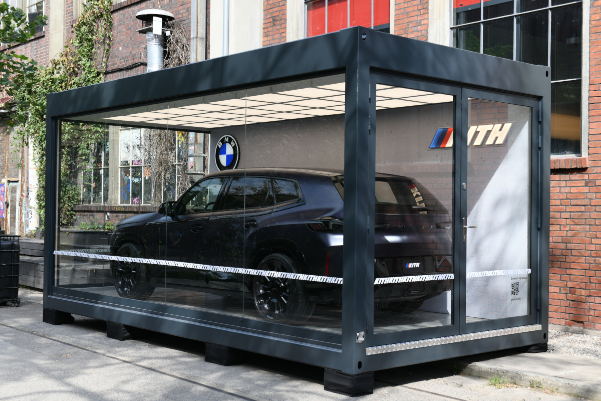 Kontener wystawowy do ekspozycji prywatnego samochodu Klienta bez podwyższenia o wymiarach zewnętrznych 2,5m x 6m.