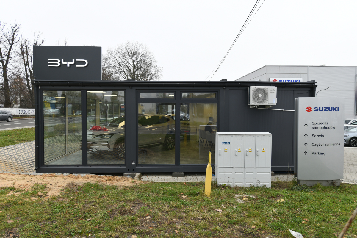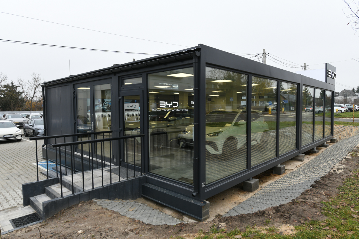 Salon samochodowy z kontenerów w Szczecinie.