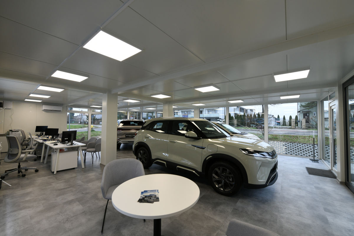 Przedstawiamy naszą kolejną realizację na salon samochodowy z kontenerów.