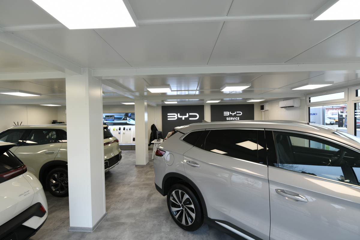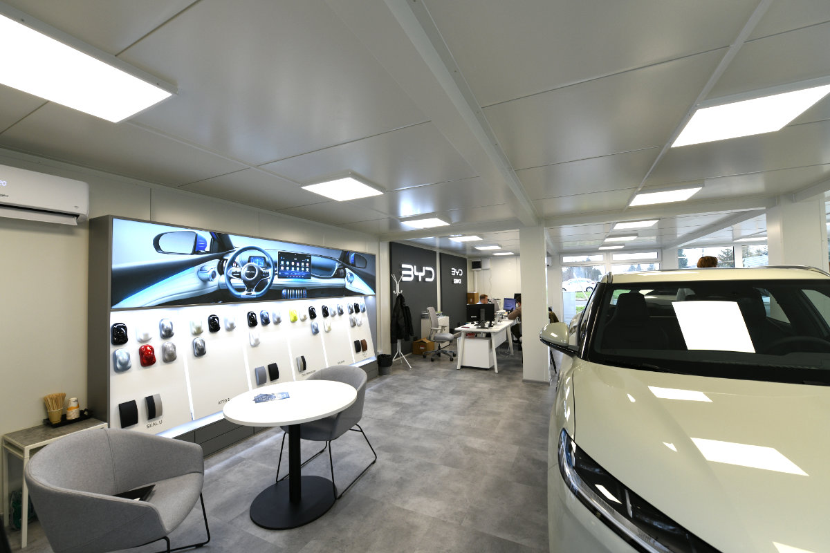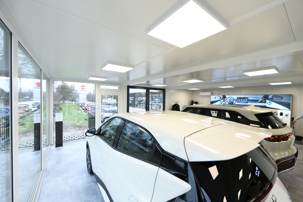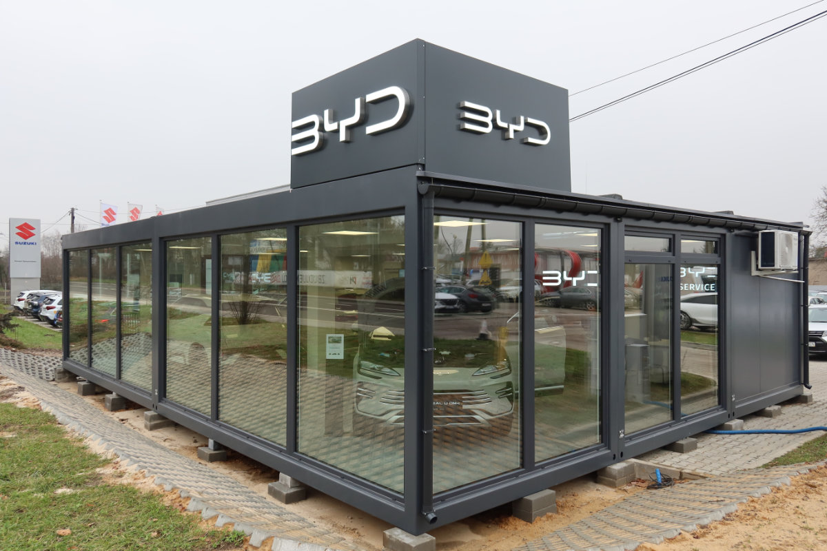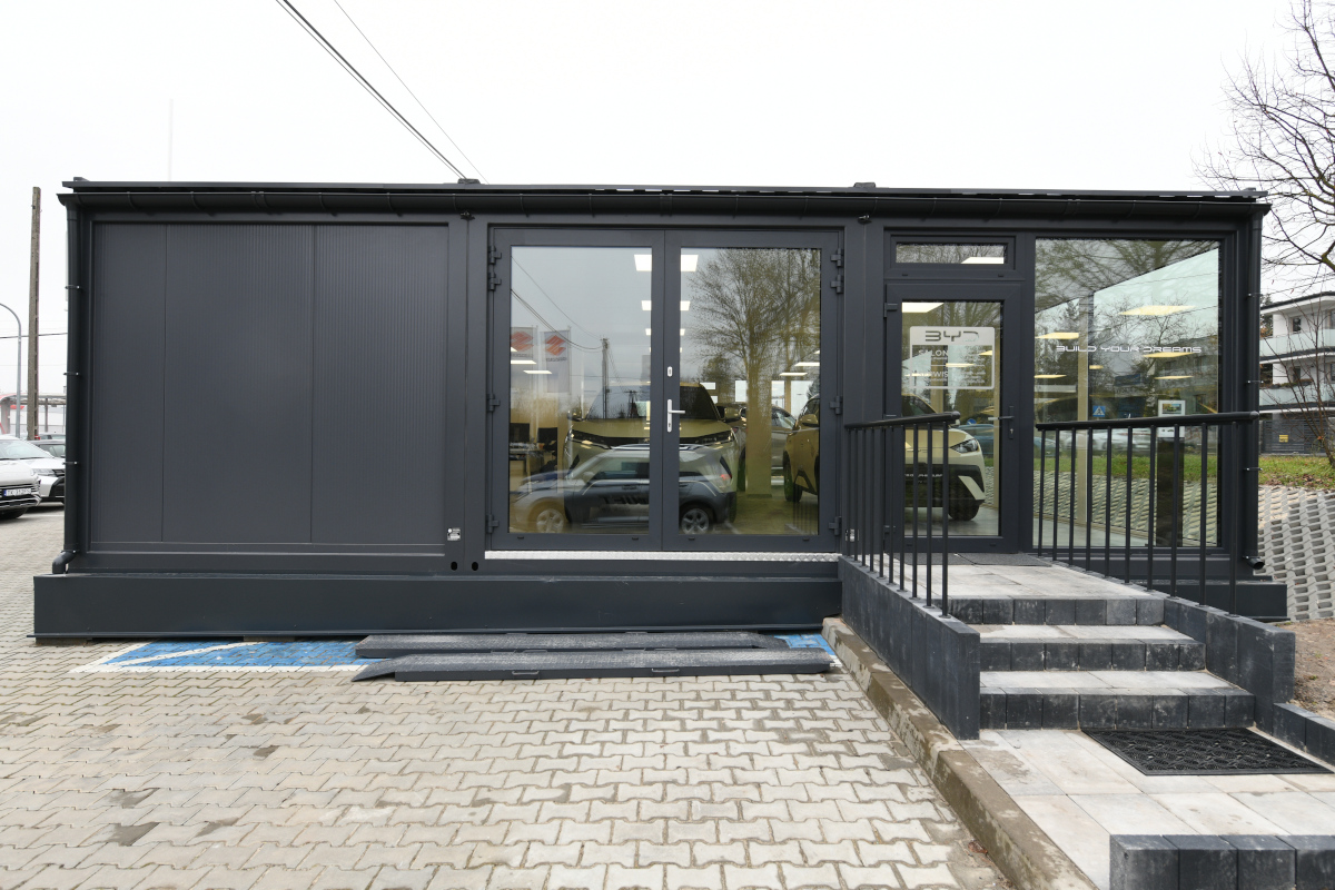 Salon samochodowy z kontenerów.