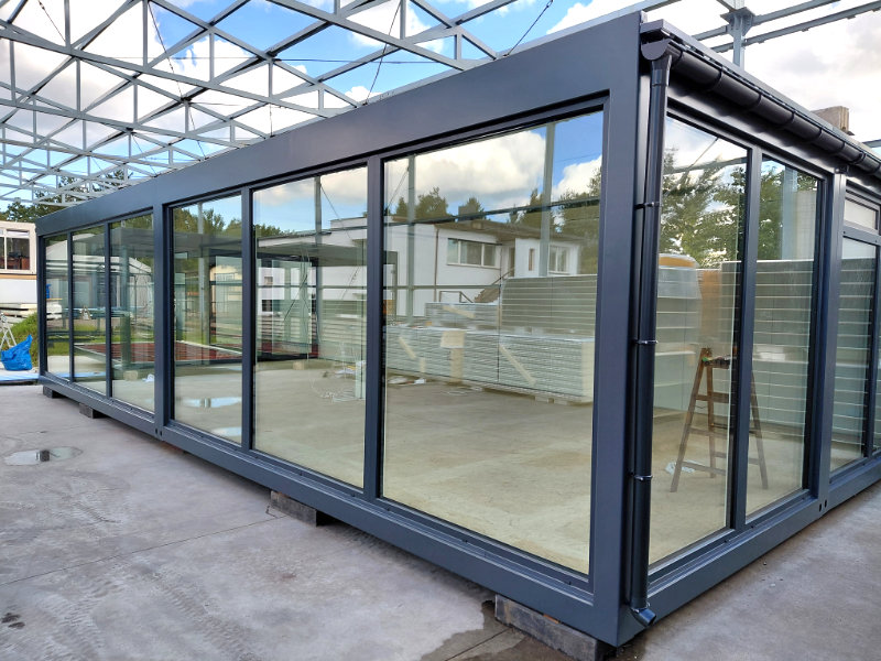 Personalizacja dotyczy m.in. rozmiaru kontenera, koloru, to czy jest na podwyższeniu, czy bez, a nawet można wybrać szyby np. antywłamaniowe lub hartowane.